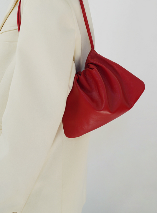 赤いバッグ、パステルのスカーフ、個性的なパターンのソックス。小さなアクセントが、全体のコーディネートを格上げ!