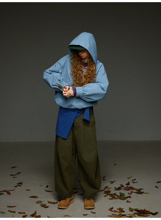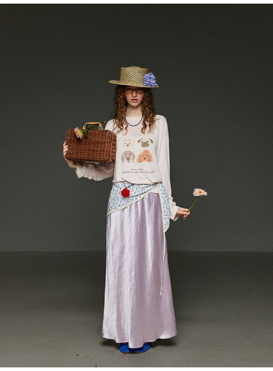 ブロックカラー ショルダースリーブ 丸首長袖Tシャツ