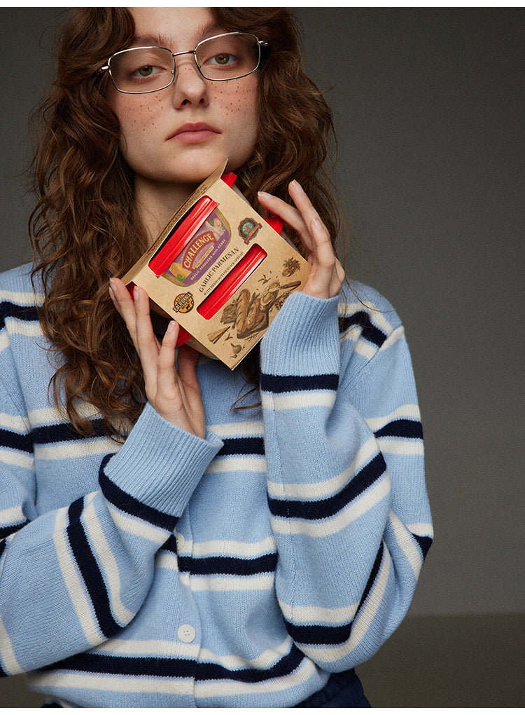 丸首ストライプニットカーディガン