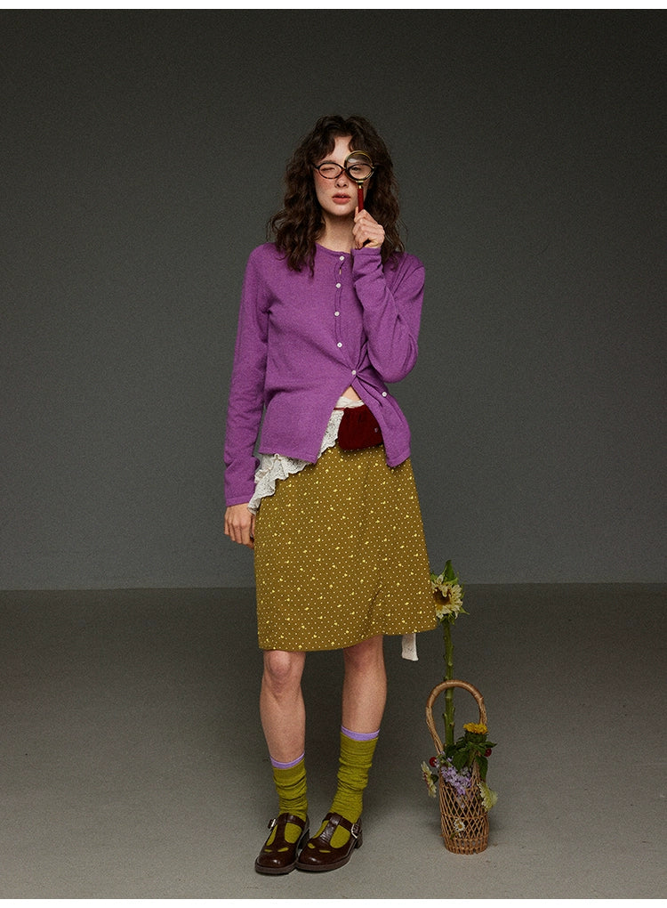 優雅な雰囲気を演出する、2025年春夏シーズンの注目アイテム。クラシックな水玉模様が印象的なこのハイウエストAラインスカートは、レトロな魅力とモダンなデザインを融合させた一着です。