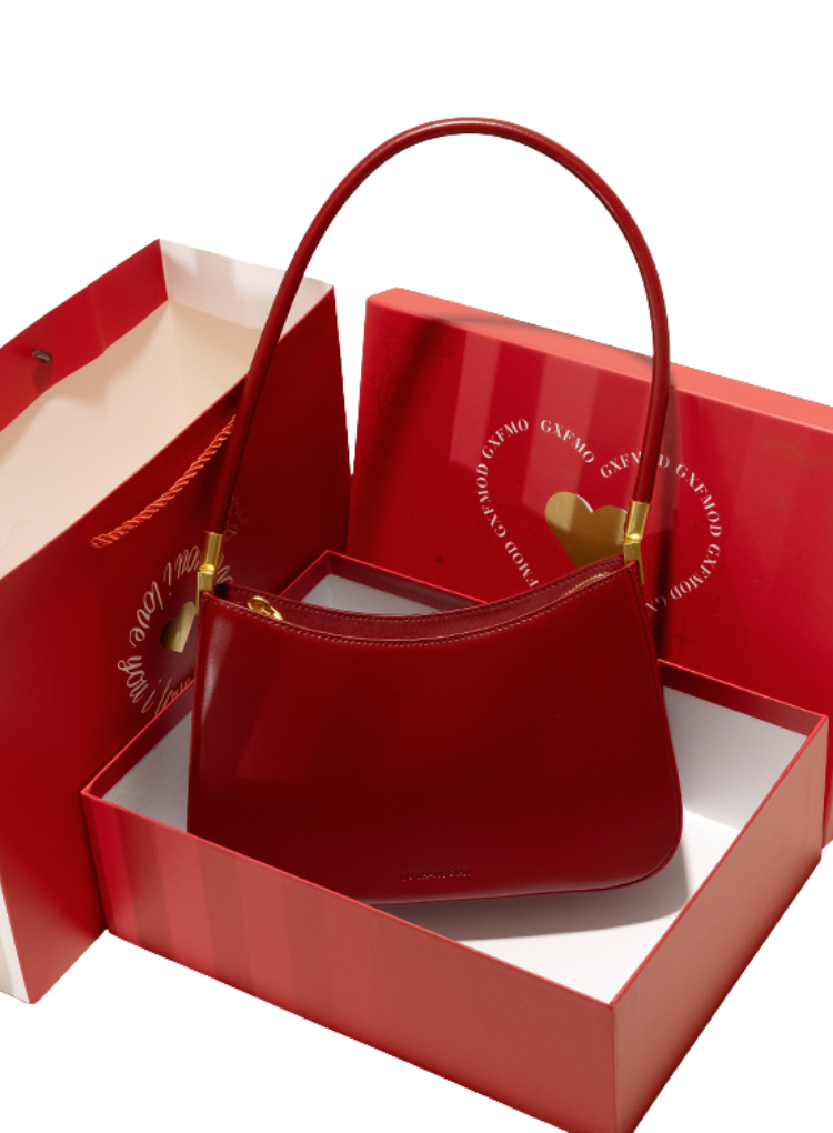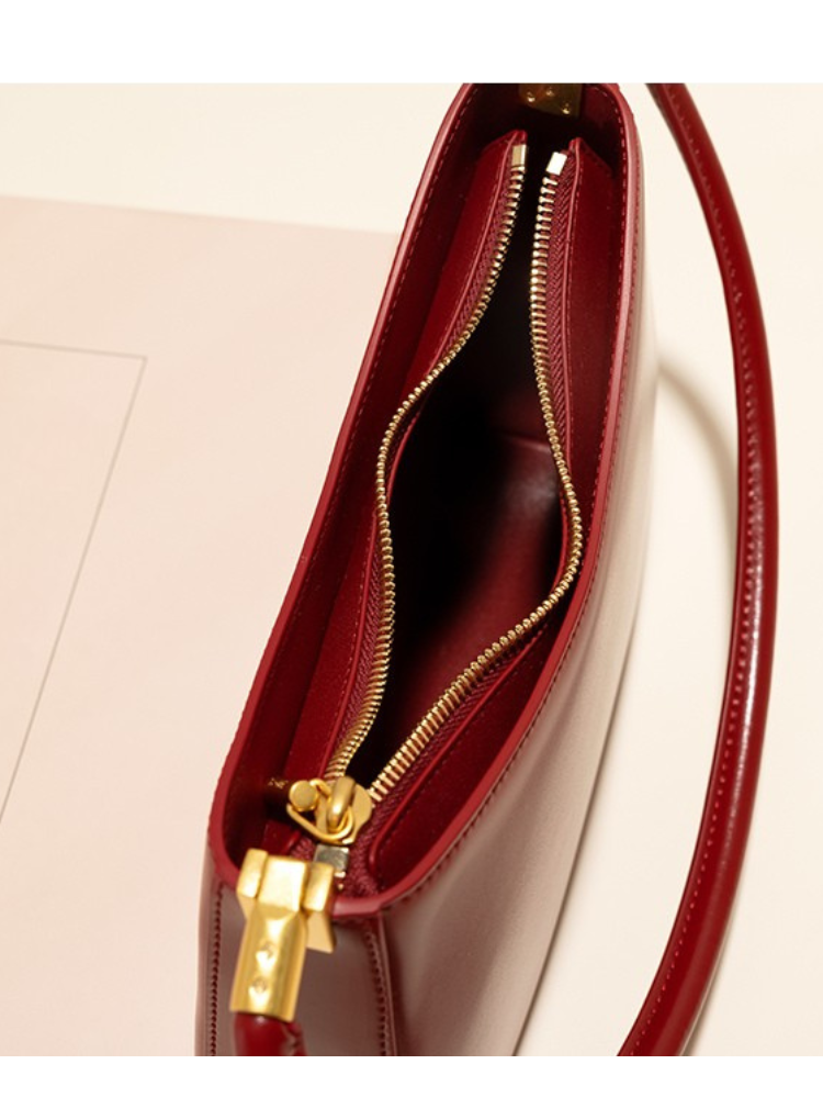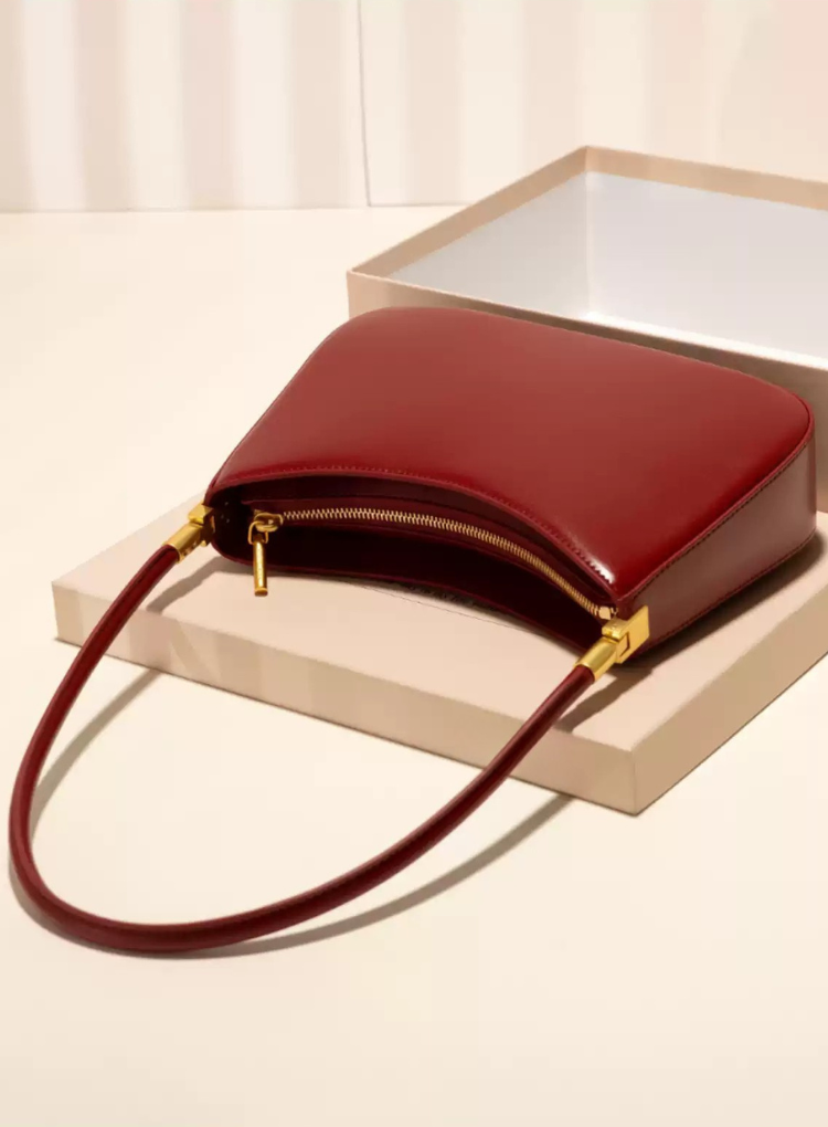 レザーバゲットバッグ|光沢レザーの大人ミニマル