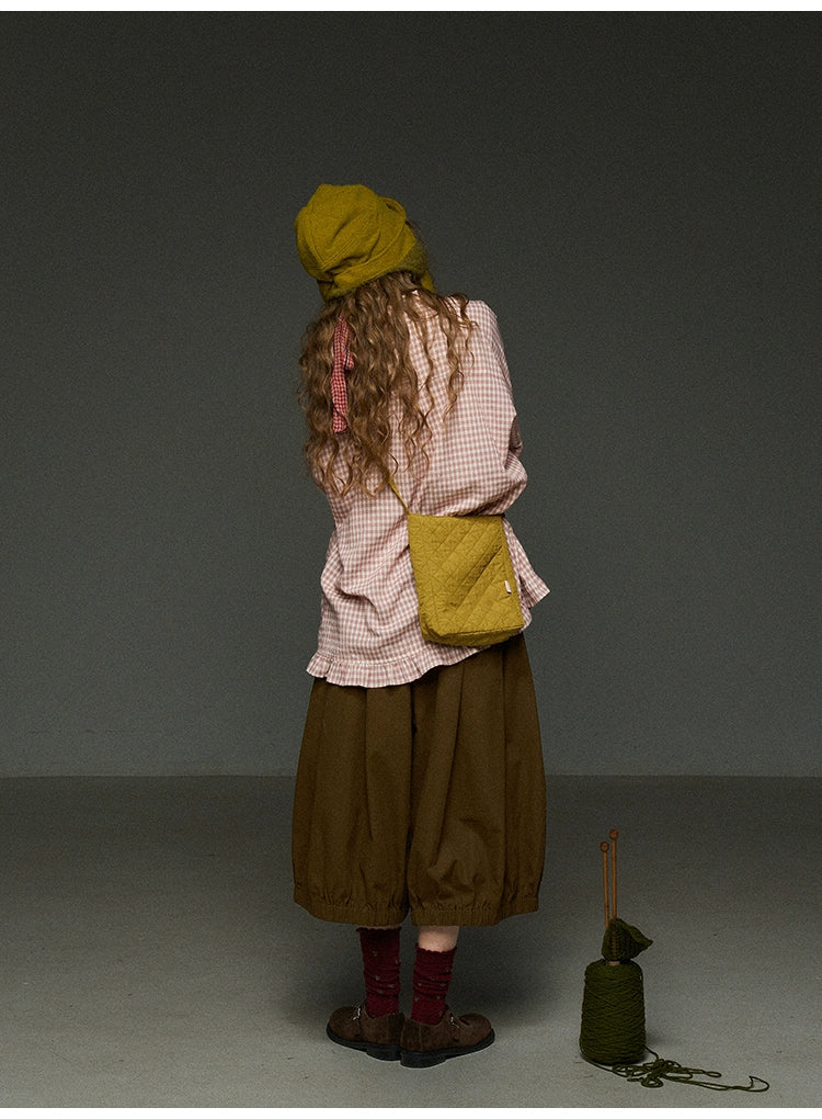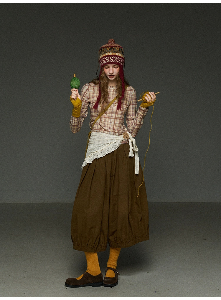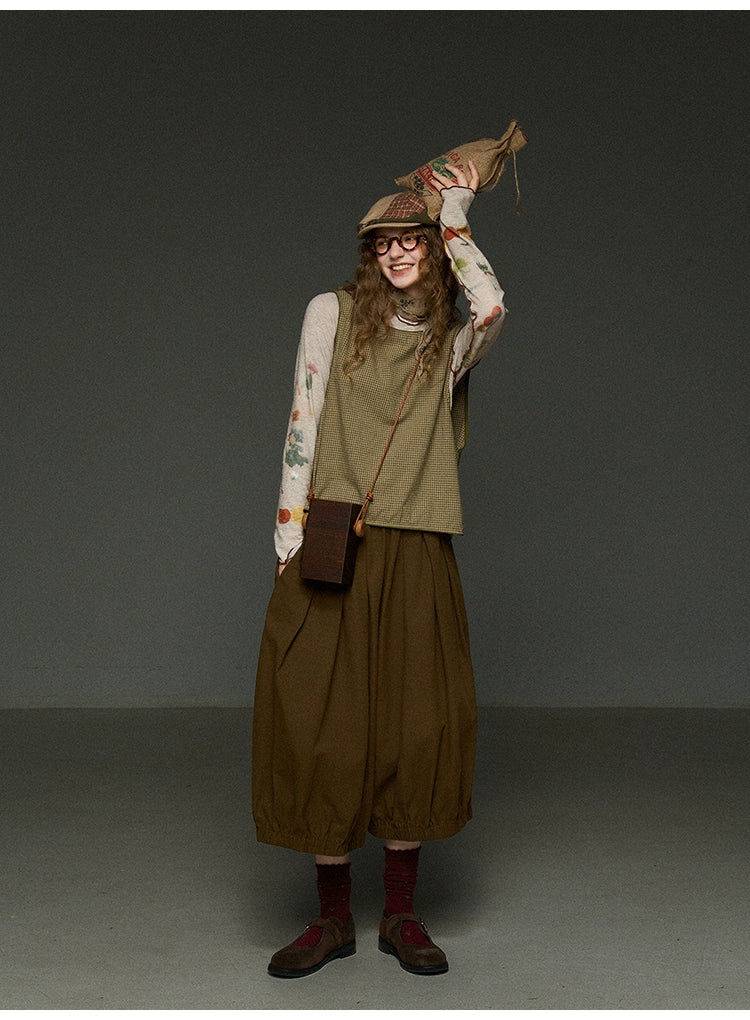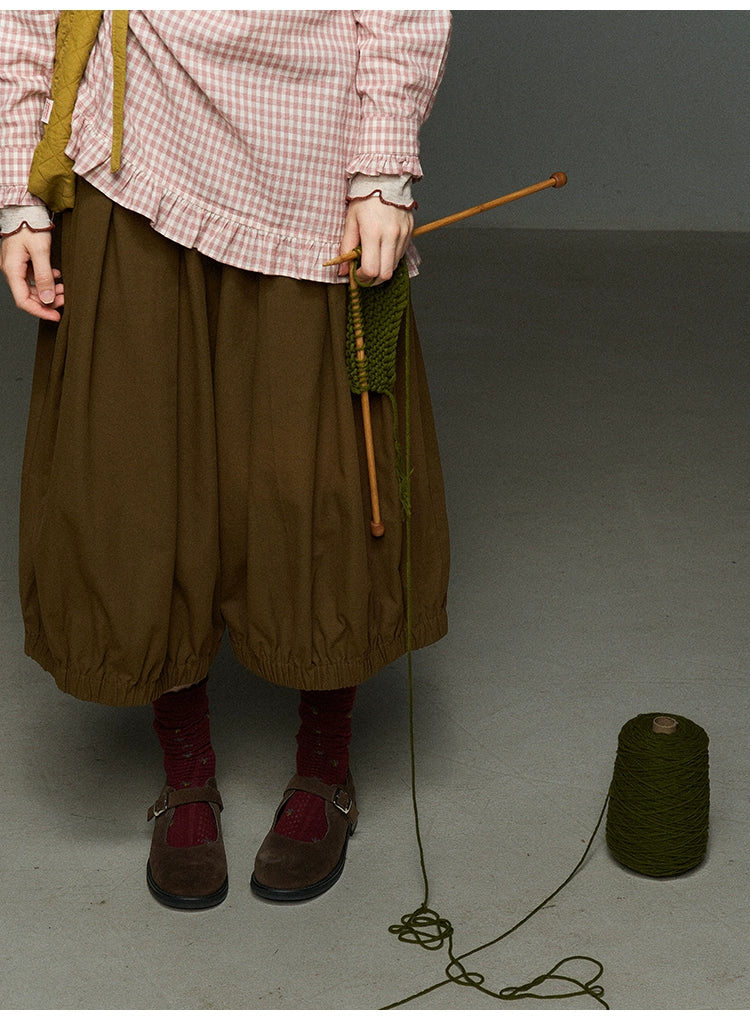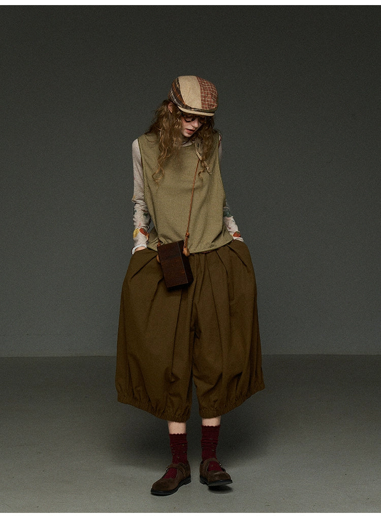 ゆったりとしたシルエットで抜け感を演出する7分丈のワイドパンツ。南瓜ランタンのような丸みのあるラインが特徴で、秋冬の重ね着にも活躍します。ハイウエスト設計で脚長効果があり、ゆるさの中にスタイルアップを叶える一着です。